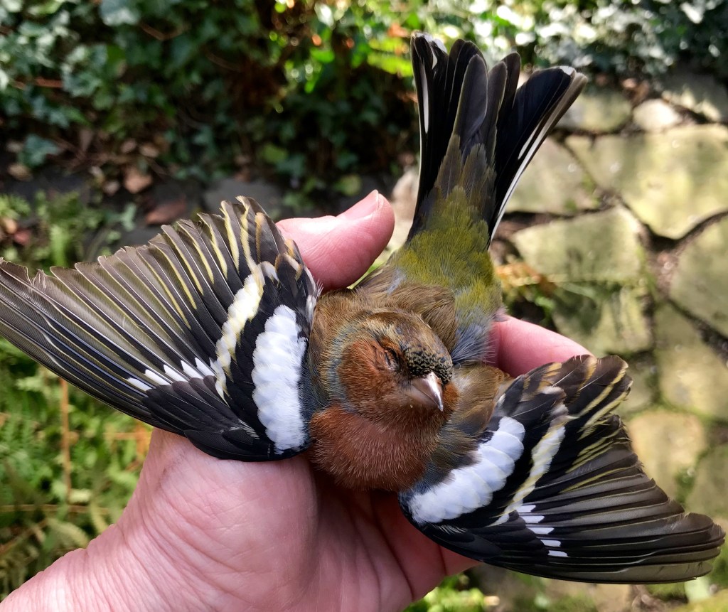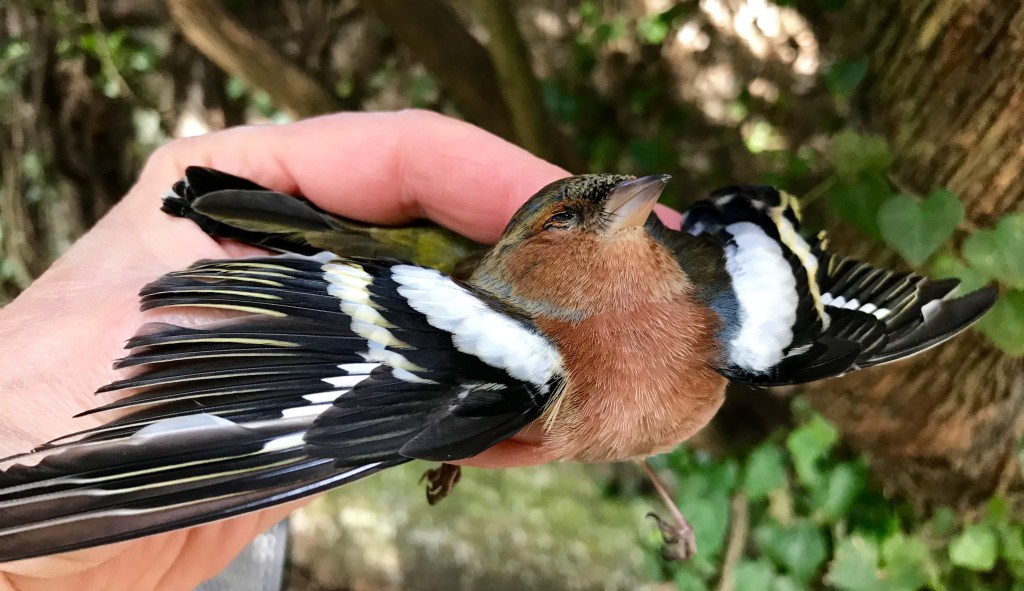 Je leek nog volledig intact, en van een perfectie die mij deed huiveren. Dat wonderlijke kleurenspel van je verrassend zachte veertjes, je tengere pootjes met die vier ragfijne teentjes daaraan, die flinterdunne nageltjes: had ik ooit iets mooiers in mijn hand? Hoeveel ‘kunst & kunst-matigheden’ moet de mens niet verzinnen, om de pracht van nog maar één vinkenveertje te kunnen evenaren? Het onbeschrijfelijke bestaat wel degelijk, en zeker bij gewaarwordingen, die de dampkring der zintuigen voorbij schieten. Want inderdaad, dat doen ze soms.