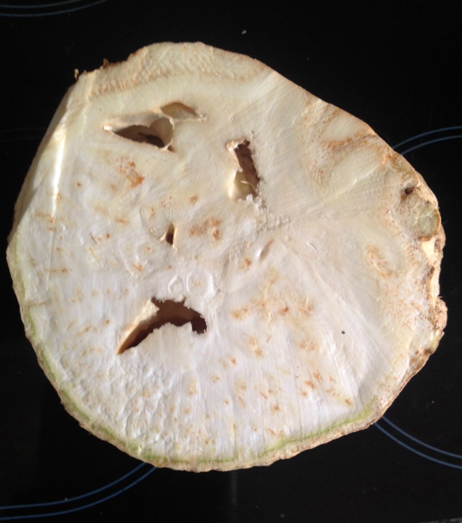 Een gehalveerde knolselder? Het zou net zo goed een doorsnede van mijn gemoed kunnen wezen, want wat valt er weer veel te verwortelknollen, als ik binnenskamers mijn vermoeide selderblik naar de mensen & de wereld richt.