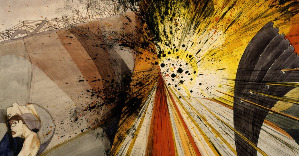 Hoe raadselachtig, deze prent: die man zo omnipotent, die vrouw zo ambivalent? Heeft hij haar zojuist gevangen gezet, maar zij trotseert hem tot-en-met? Hij die niet meer zonder pantser kan, versus zij die alsnog haar hand uitsteekt? Of zoals de dichter Adriaan Morriën komt te zeggen: ‘Veel tegenstrijdigs ligt in onze zielen bijeen, als kinderen in hetzelfde bed.‘ Hij in zijn loodzware pantser zichzelf ten spijt, versus zij achter de tralies van haar al even loodzware genegenheid?