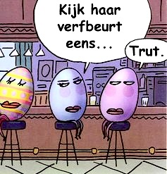 Op z’n paasbest, dat had vroeger een werkelijke betekenis. Hoe koud het soms ook nog was, moeder moest & zou haar nieuwe deux-pièce aandoen om naar de paasmis te gaan. Onze acht paar schoenen stonden vanaf paaszaterdag in een lange rij klaar, met dunne nieuwe witte sokjes erin. We liepen er met Pasen allemaal glanzend & pastelkleurig bij, er werd daarin gebibberd & geklappertand, maar dan wel met een uitermate feestelijk gevoel.