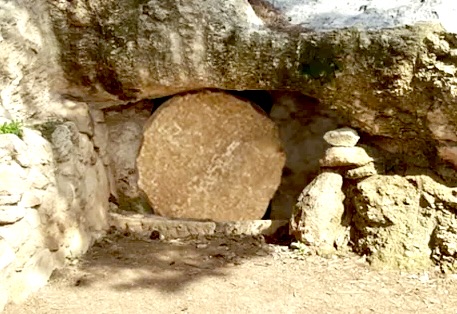 De nog geradbraakte Jezus krijgt zijn windselen niet los, of slaagt er niet in om de zware steen weg te rollen? Zijn Goddelijke Vader is z’n Goddelijke Kluts kwijtgeraakt en krijgt zijn Zoon niet meer verrezen uit de dood?