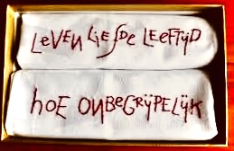 Wat daar staat kan niemand onberoerd laten, en al helemaal niet de weerloze manier waarop. Daar mogen heel wat woorden voor worden neergelegd, dit borduurwerkje moet zelfs God hebben ontroerd.