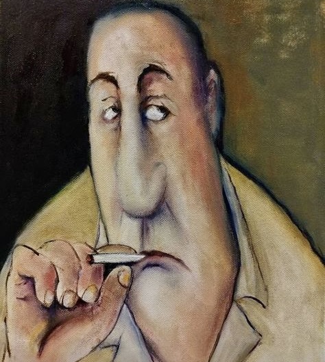 Zijn omhoog gestoken vuist als een dreigende granaat in de lucht.