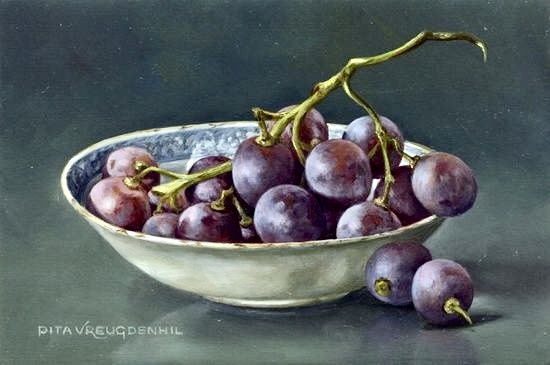 Of die witte ‘waas’, dat teer niet glanzend laagje, aan dauw gelijk, op Pita Vreugdenhil’s blauwe druiven. Zowel letterlijk als figuurlijk: te mooi & te volmaakt om over te leveren aan de gruwel van malende tanden? Vreugdenhil heeft ze daar bij deze alvast voor gevrijwaard.