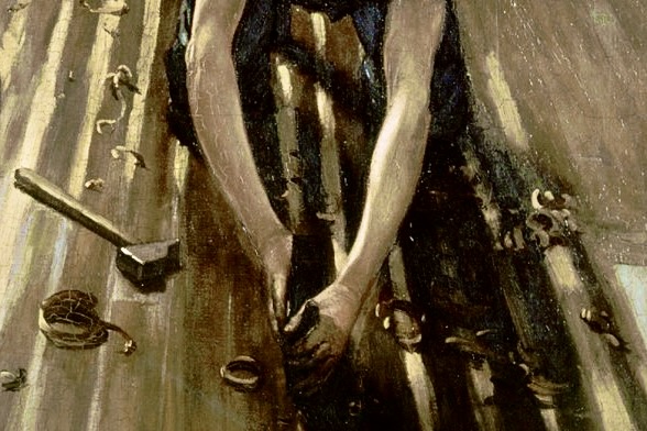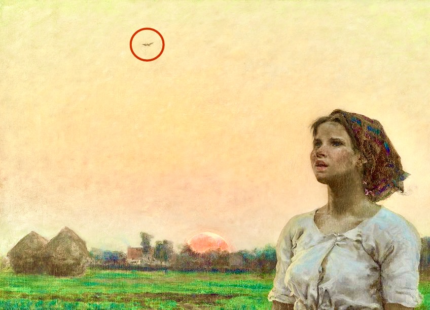Zo hoorde ik in een film eens een schoolmeisje iets voorlezen, te midden van het klastumult waarin haar woorden achteloos verloren gingen: ‘De vleugels van de vogels snijden als scherpe scharen de wolken in kleine stukjes…’ Bijna zoals op dit schilderij van Marc Eemans. En dan denk ik: awel mens, waarom krijgt gij dat zelf niet uit uw pen? Gij ziet dat toch ook elke morgen met eigen ogen gebeuren?