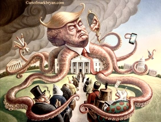 Met een wapen in de hand komt men door het ganse land? We halen niet meer de trekker over, maar de trumper.We lopen niet langer in de tred- maar in de trumpmolen. Een gevecht tegen de tijd & de rimpels? Trumpitur invidia: tegen de nijd & de trumpels, zul je bedoelen.