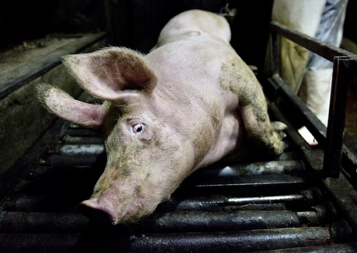 Toen ik vanmorgen om half vijf even uit bed moest, dacht ik: licht uit & voort slapen! Maar plots brandde weer dat eindbeeld van dat bang varken op mijn netvlies. Pas aangekomen in het slachthuis, stond het daar roerloos te luisteren naar het gekeel van de varkensslacht, met een blik in de ogen die ik nooit meer zal kunnen vergeten. Tot het even later heftig stuiptrekkend voorbij kwam gerold, met nog altijd die blik.