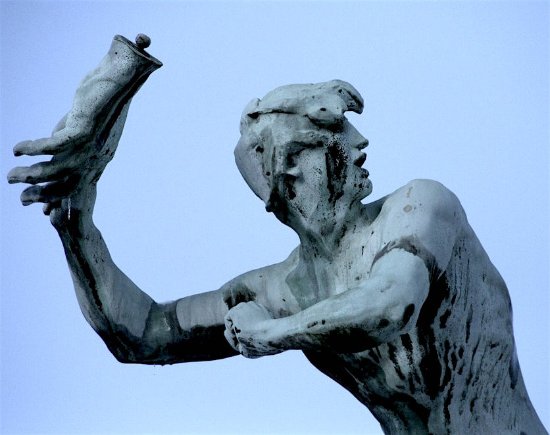 en ze dan onder elkaar verdelen. Maar de vreemdmaker loopt tussen de mensen en duwt ze uit elkaar. Gods hartslag in ons: de angst. Een god die de mensen niet geschapen, maar gevonden heeft. Een god, zo minuscuul dat hij ieder schepsel binnenglipt’.