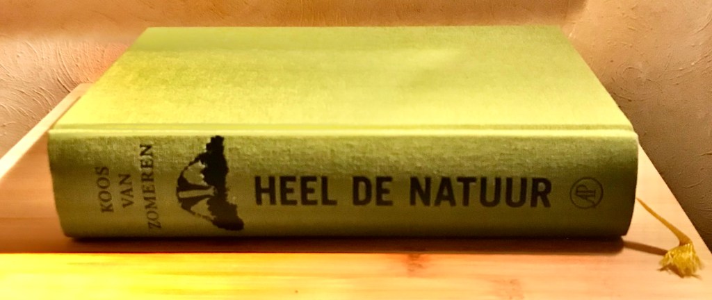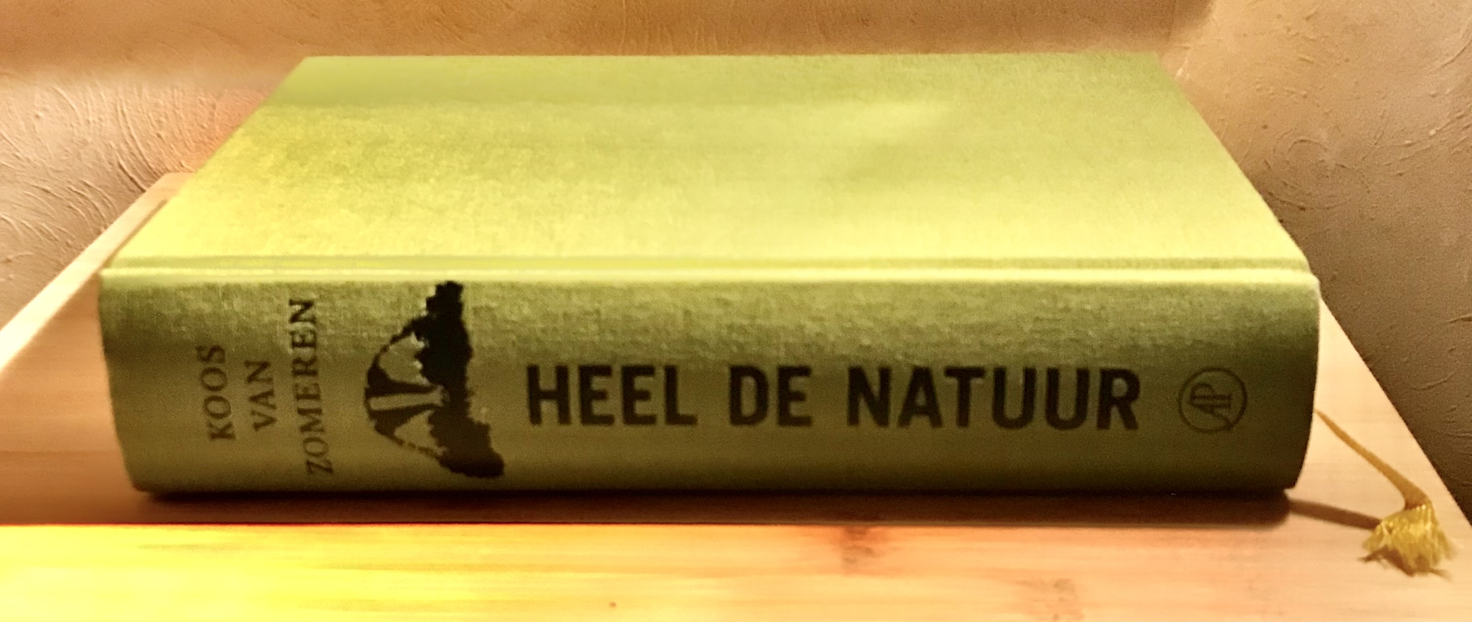 Vannacht in bed nog eens dat dikke boek ‘Heel de Natuur’ van Koos van Zomeren op mijn borst gezet en erin, als op hol, aan ’t lezen geslagen. De opkrullende papieren kaft er al gauw af gegooid als een nutteloos doekje voor het bloeden. Vervolgens had ik een koninklijk groen linnen boek in handen. Helemaal zoals het moest zijn: met voelbare vezels.